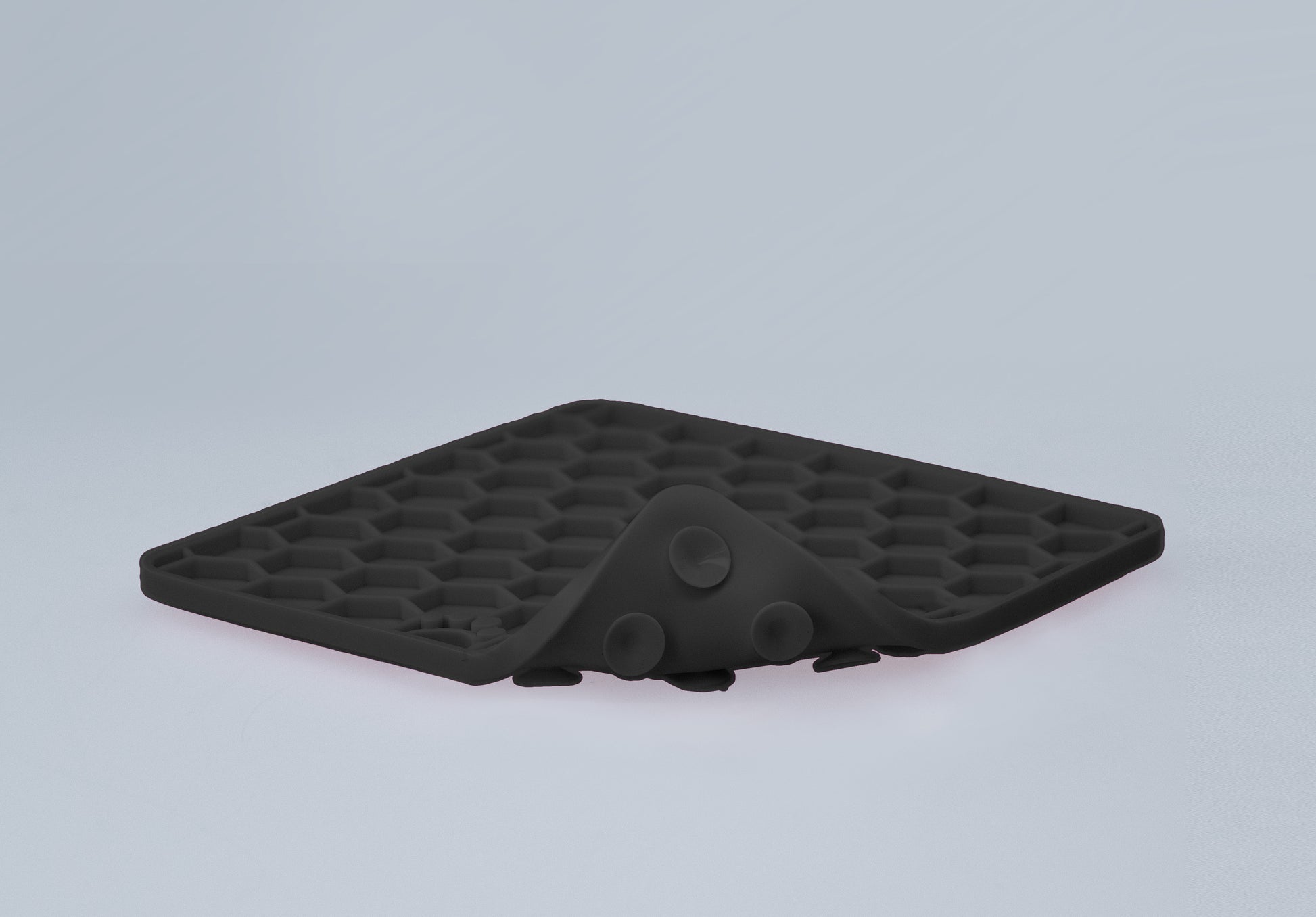 Hergestellt aus 100% Silikon und kann dank der Saugnäpfe schnell und einfach an jeder ebenen Fläche befestigt werden.