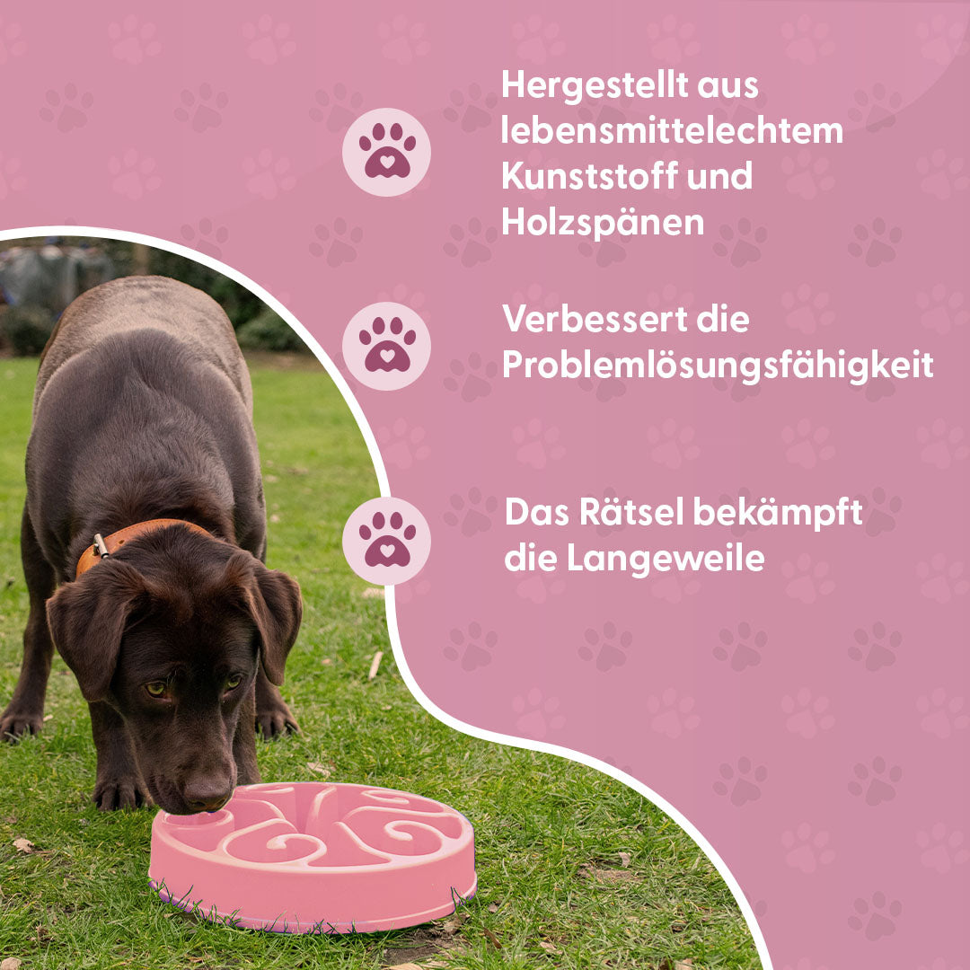 Mit dem Eat Slow Live Longer Original Langsamfresser gehört das Verschlingen der Vergangenheit an! Dieser Futternapf mit Spiralmuster macht es dem Hund oder der Katze schwerer, das Trockenfutter zu erreichen. So nimmt das Tier kleinere Bissen, frisst langsamer und kaut besser. Der Langsamfresser hat rutschfeste Füße auf dem Boden und ist spülmaschinenfest.