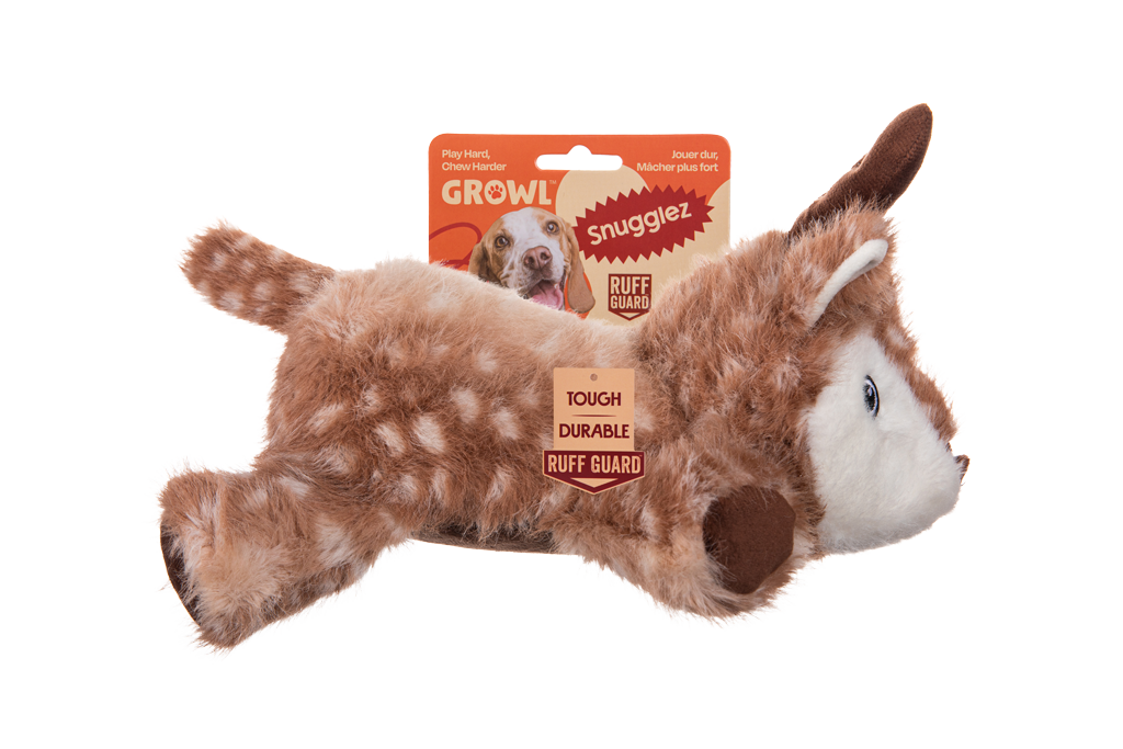 Die Growl Snugglez kombinieren unwiderstehliche Weichheit mit einer stabilen Konstruktion. Jedes Snugglez-Spielzeug verfügt über verstärkte Nähte und Ruff Guard Technology, wodurch die Spielzeuge für intensiven Gebrauch und langanhaltenden Spaß geeignet sind.