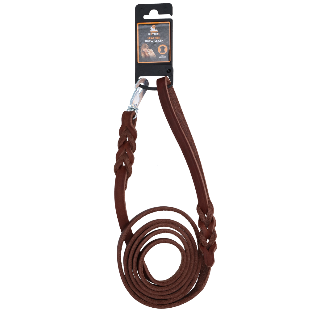 Spotted! Pro Hochwertige Leder-Showleine! Gönnen Sie sich und Ihrem Hund das Beste mit dieser hochwertigen Showleine aus Leder! Nicht nur praktisch, sondern auch ein Blickfang! Mit schöner Flechtung am Griff und an der Halsbandbefestigung. In Kombination mit dem schönen Leder ergibt sich ein sehr schicker Look! Hergestellt aus dem Oberleder der Kuh. Sie ist vollständig gegerbt und daher weich und geschmeidig. Dank dieses Bräunungsprozesses ist die Hautstruktur noch sichtbar, was zu einem schönen, natürlichen Aussehen führt. Dieses Leder wird mit natürlichem Öl behandelt, was seine Geschmeidigkeit noch erhöht! Die Metallteile der Linie sind in stilvollem und rustikalem Altsilber ausgeführt. Infolgedessen können Sie von diesem Produkt folgende Eigenschaften erwarten: